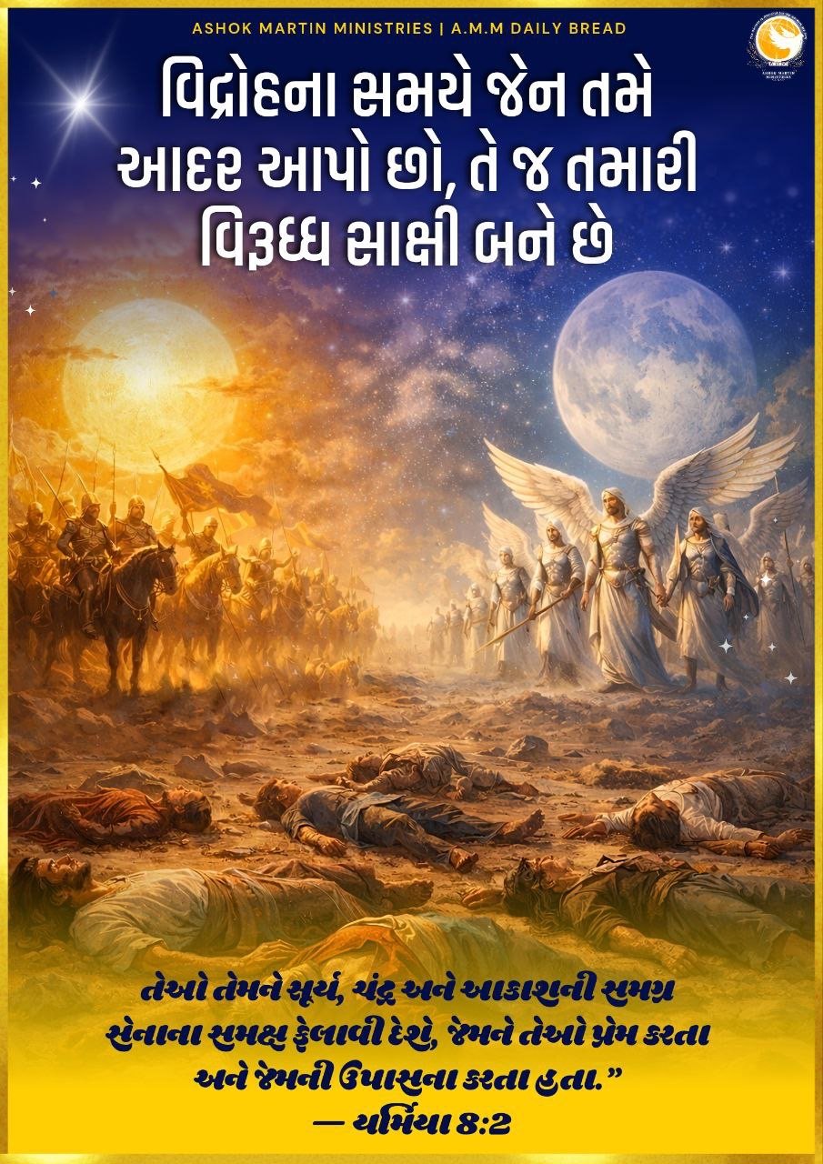 જે સૂર્ય, ચંદ્ર અને તારાઓને યહૂદાએ આદર આપ્યો અને પૂજનીય ગણ્યા, એ જ તેમની સામે સાક્ષી બની ઊભા રહેશે. મનુષ્યે પોતાના જીવનમાં પરમેશ્વરના સ્થાને જેને પ્રેમ આપ્યો, તે ન્યાયના દિવસે તેની રક્ષા નહીં કરે. જેમની તેણે સેવા કરી, તે તેને બચાવી નહીં શકે. તેમની ભટકેલી ભક્તિ જ તેમના દ્રોહનો પુરાવો બની ગઈ.