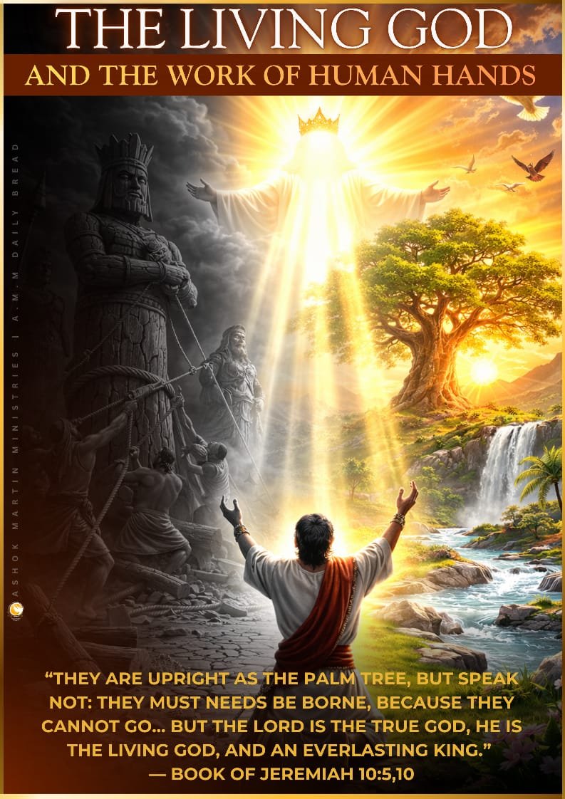 > `“They are upright as the palm tree, but speak not: they must needs be borne, because they cannot go… But the LORD is the true God, He is the living God, and an everlasting King.” — Book of Jeremiah 10:5,10`