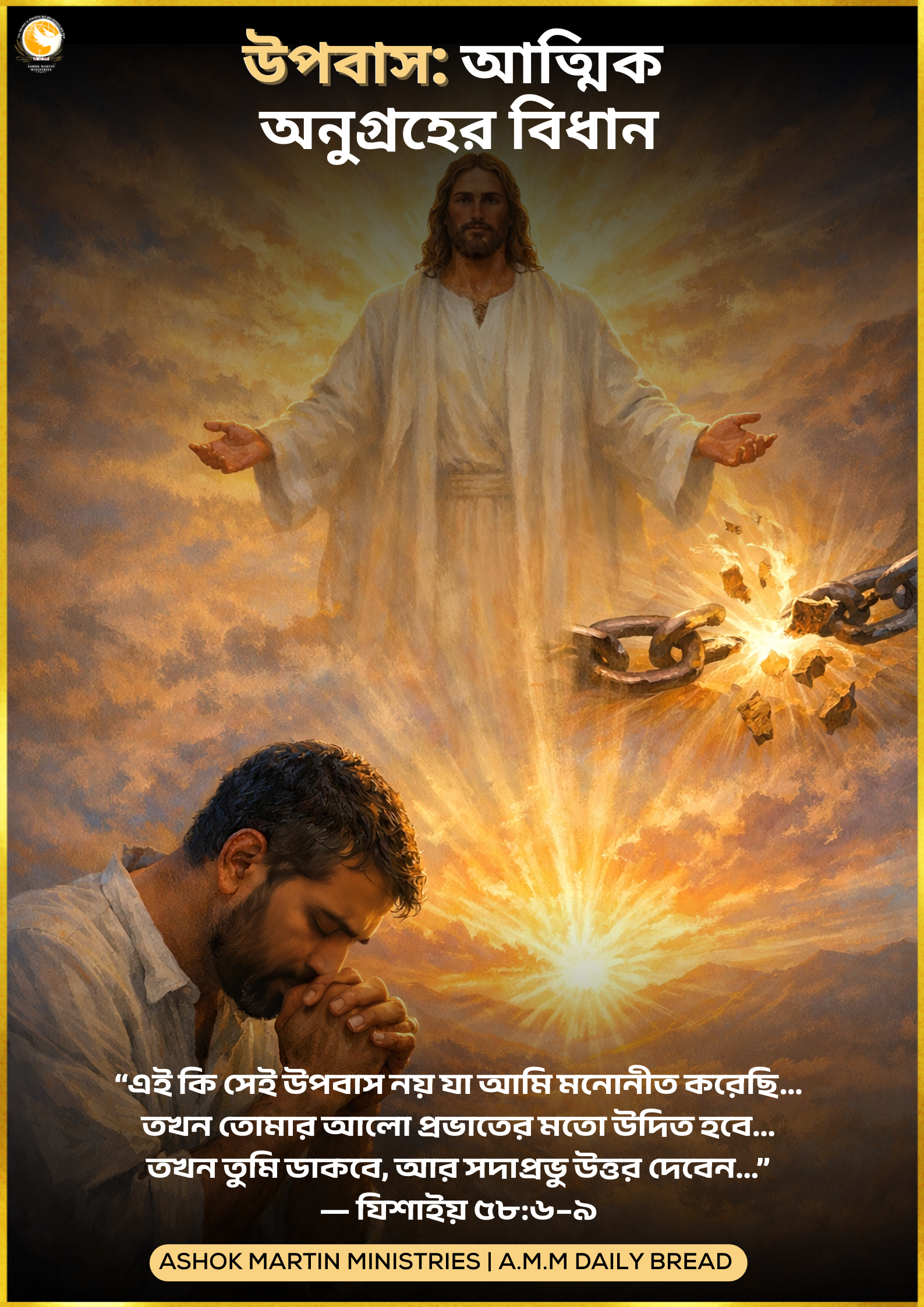 যে উপবাস ঈশ্বর বেছে নেন, তা অন্যায়ের শৃঙ্খল খুলে দেয়, অত্যাচার ভেঙে দেয়, ক্ষুধার্তকে খাদ্য দেয় এবং পীড়িতের মর্যাদা পুনরুদ্ধার করে। যখন দয়া বাইরে প্রবাহিত হয়, তখন অনুগ্রহ উপর থেকে নেমে আসে। আলো উদিত হয়। আরোগ্য প্রস্ফুটিত হয়। প্রার্থনা দ্রুত উত্তর পায়। আত্মিক অনুগ্রহ হলো সেই জীবনের উপর স্বর্গের অনুমোদন, যা ঈশ্বরের চরিত্রকে প্রতিফলিত করে।